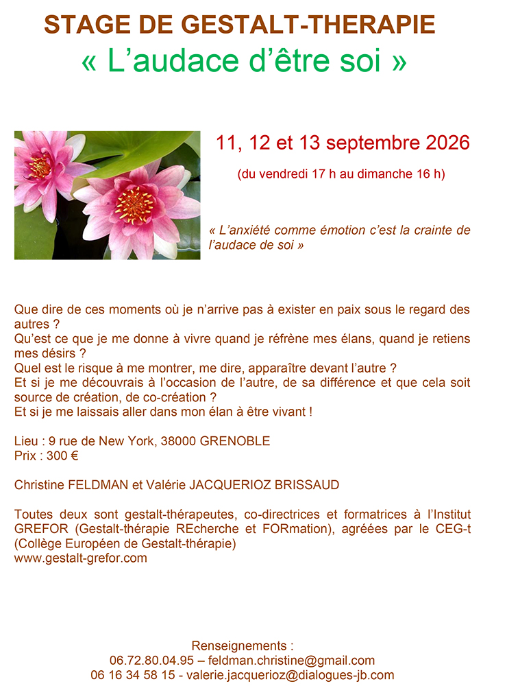 Gestalt-thérapeutes : Christine FELDMAN et Valérie JACQUERIOZ-BRISSAUD